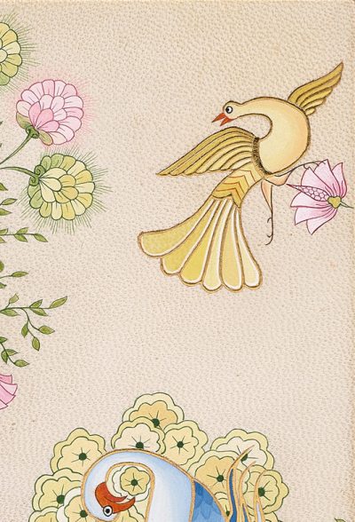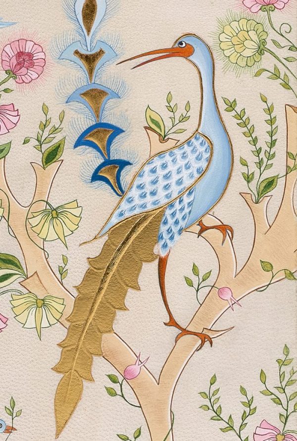 The gold leaf is delicately placed on dry gesso. The surface is then burnished with an "agathe" to strengthen its radiance.
